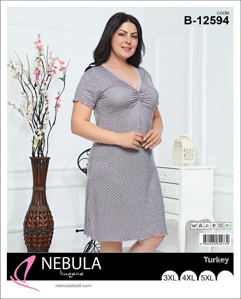 Koszula nocna krótki rękaw Wiskoza Big Size 3XL-5XL B- 12594 to idealny wybór dla kobiet ceniących wygodę i swobodę podczas snu. Dostępna w dużych rozmiarach, zapewnia pełen komfort i swobodę ruchów.