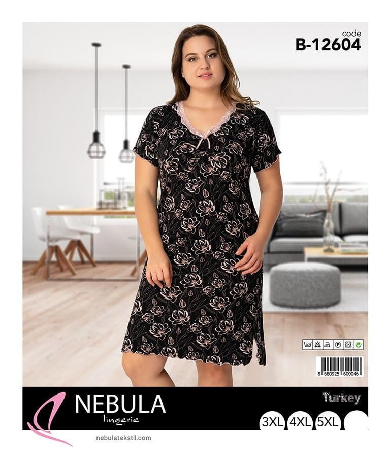 Koszula nocna krótki rękaw wykonana z wysokiej jakości materiału - wiskozy, dostępna w rozmiarach BIG SIZE 3XL-5XL. Model B-12604.