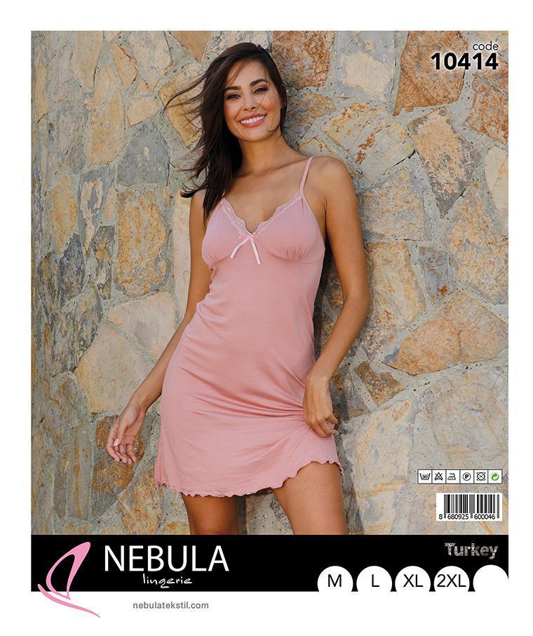 Dostępna w rozmiarach M-XXL, koszula nocna na wąskim ramiączku 10414 doskonale dopasuje się do sylwetki i zapewni pełną swobodę ruchów podczas snu.