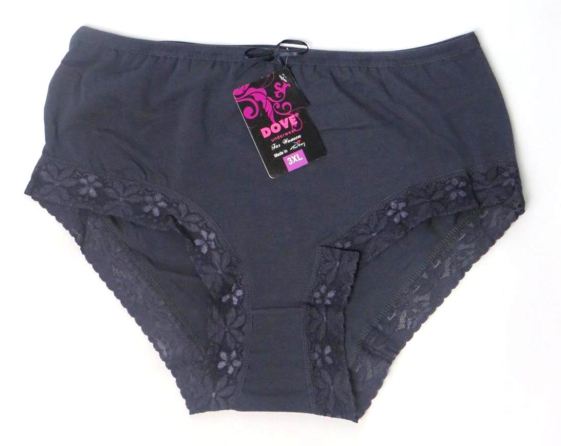 Majtki damskie z koronką 1633 są dostępne w rozmiarach XL-3XL. Paczka zawiera 10 sztuk, co czyni tę ofertę idealną dla hurtowni i sklepów internetowych. Komplet jest dostępny w różnych kolorach, takich jak biały, czarny, szary, ecru, beż, grafit i granatowy.