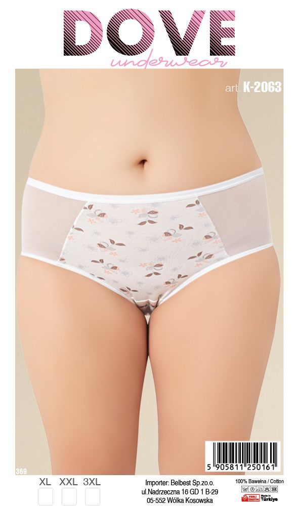 Komplet majtek damskich w paczce hurtowej zawiera 24 sztuki. Wykonane są z wysokiej jakości materiałów: 95% bawełny i 5% elastanu, co zapewnia komfort i trwałość noszenia. Majtki dostępne w rozmiarach: XL, XXL, 3XL.