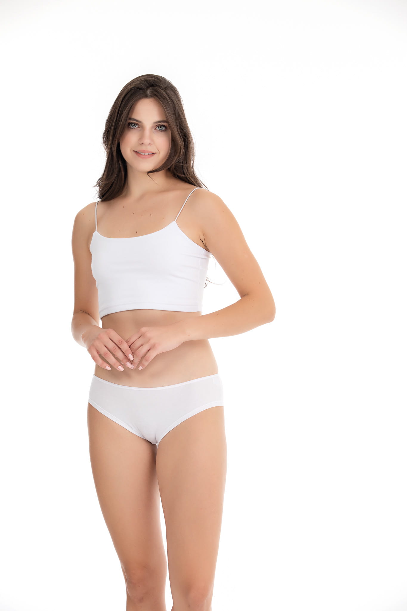 W skład kompletu wchodzą majtki w różnych kolorach: białe, beżowe i czarne.