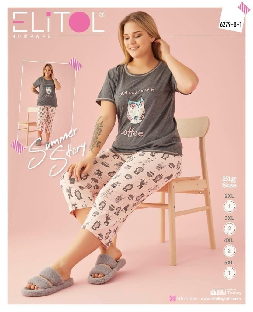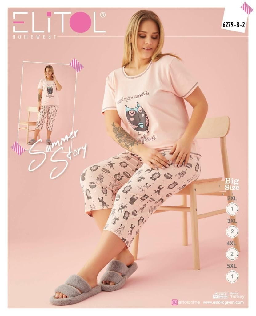 PIŻAMA DAMSKA KRÓTKI RĘKAW 3/4 SPODNIE BAWEŁNA BIG SIZE XXL-5XL 6279-B-1 6279-B-2
