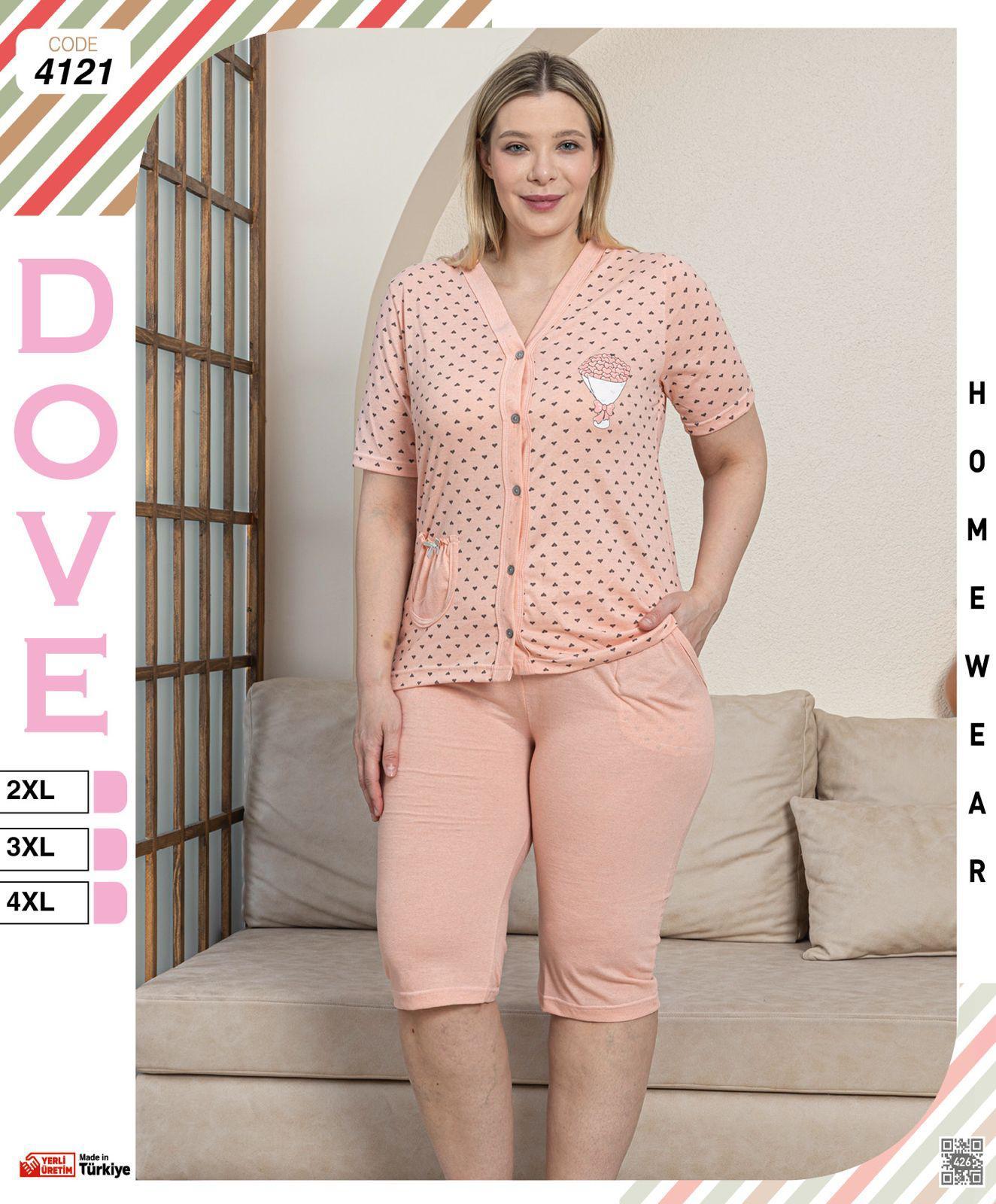PIŻAMA DAMSKA KRÓTKI RĘKAW 3/4 SPODNIE BAWEŁNA ROZPINANA 2XL-4XL 4121 to wygodny komplet bielizny hurt, który zapewni Ci komfort podczas snu. Składa się z koszulki z krótkim rękawem oraz spodni o długości 3/4. Piżama jest wykonana z wysokiej jakości bawełny, która jest przyjemna w dotyku i gwarantuje odpowiednią cyrkulację powietrza.