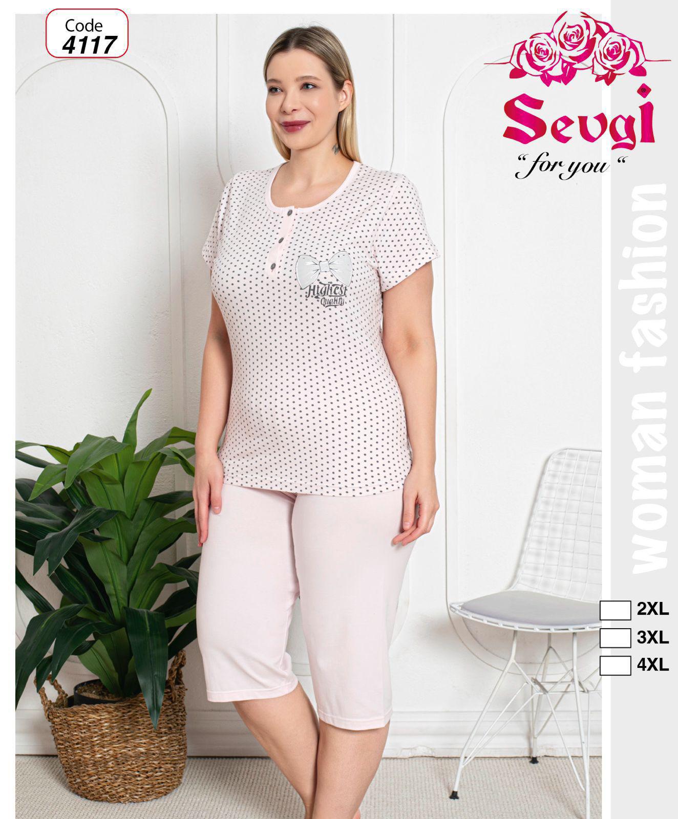 PIŻAMA DAMSKA KRÓTKI RĘKAW 3/4 SPODNIE BIG SIZE 2XL-4XL 4117
