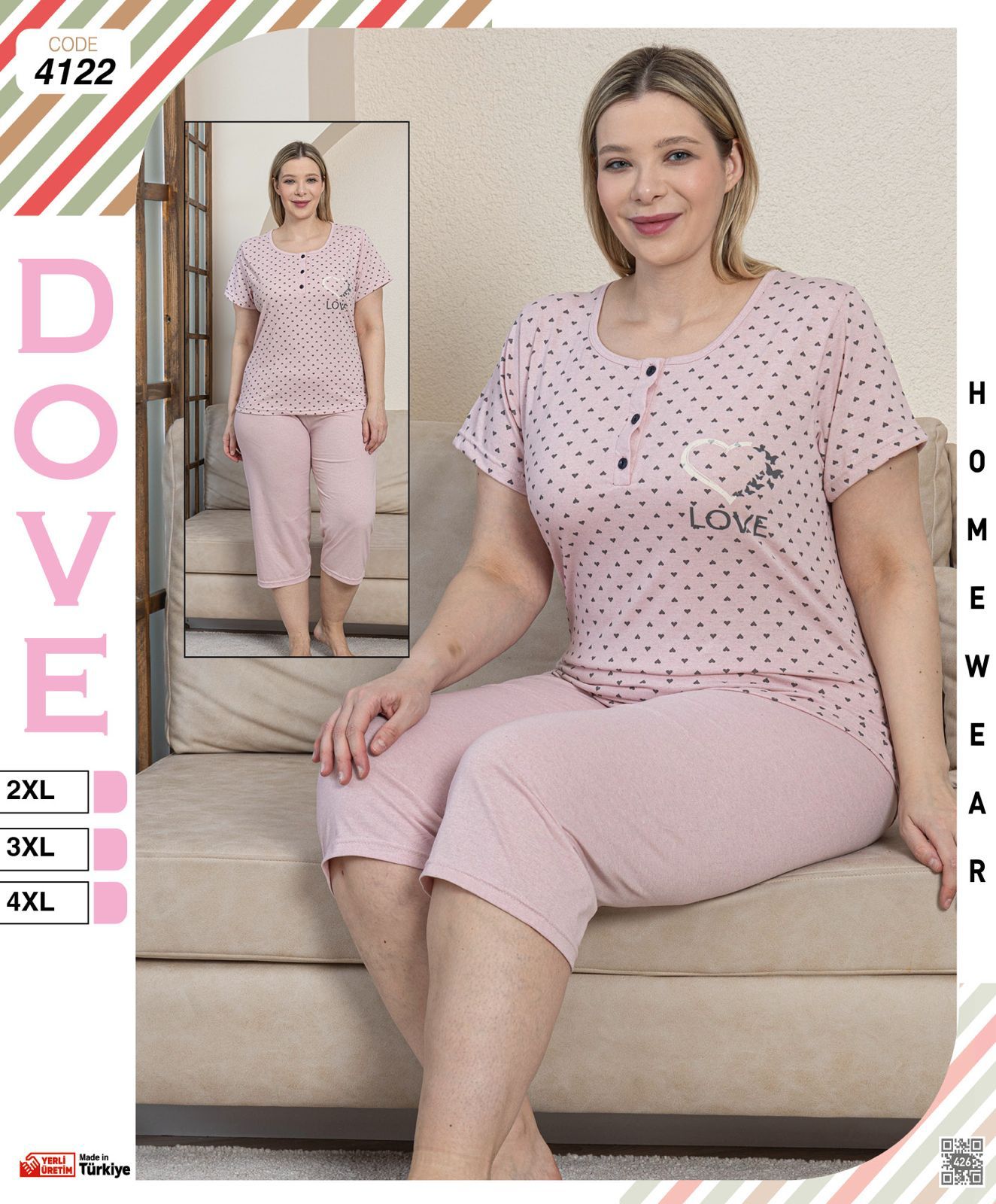 PIŻAMA DAMSKA KRÓTKI RĘKAW 3/4 SPODNIE BIG SIZE 2XL-4XL 4122