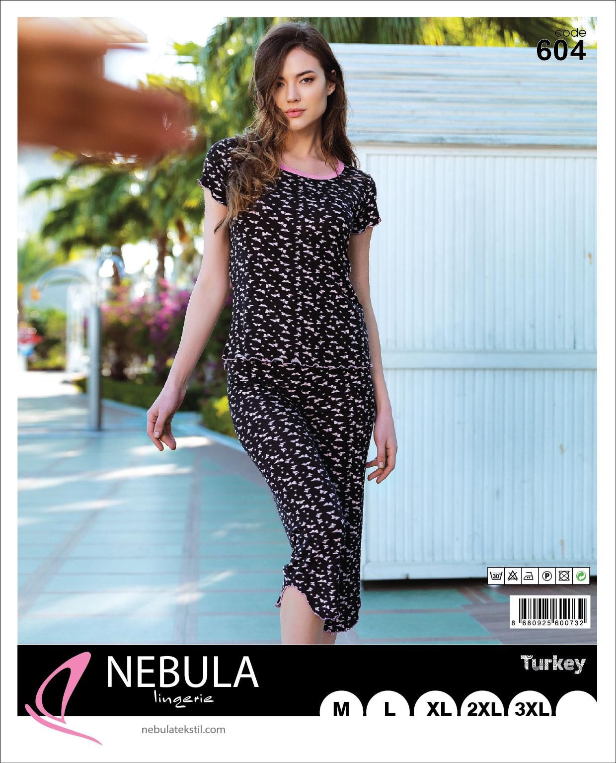 PIŻAMA DAMSKA KRÓTKI RĘKAW 3/4 SPODNIE M-3XL 604 jest idealna do sprzedaży hurtowej jako komplet bielizny.