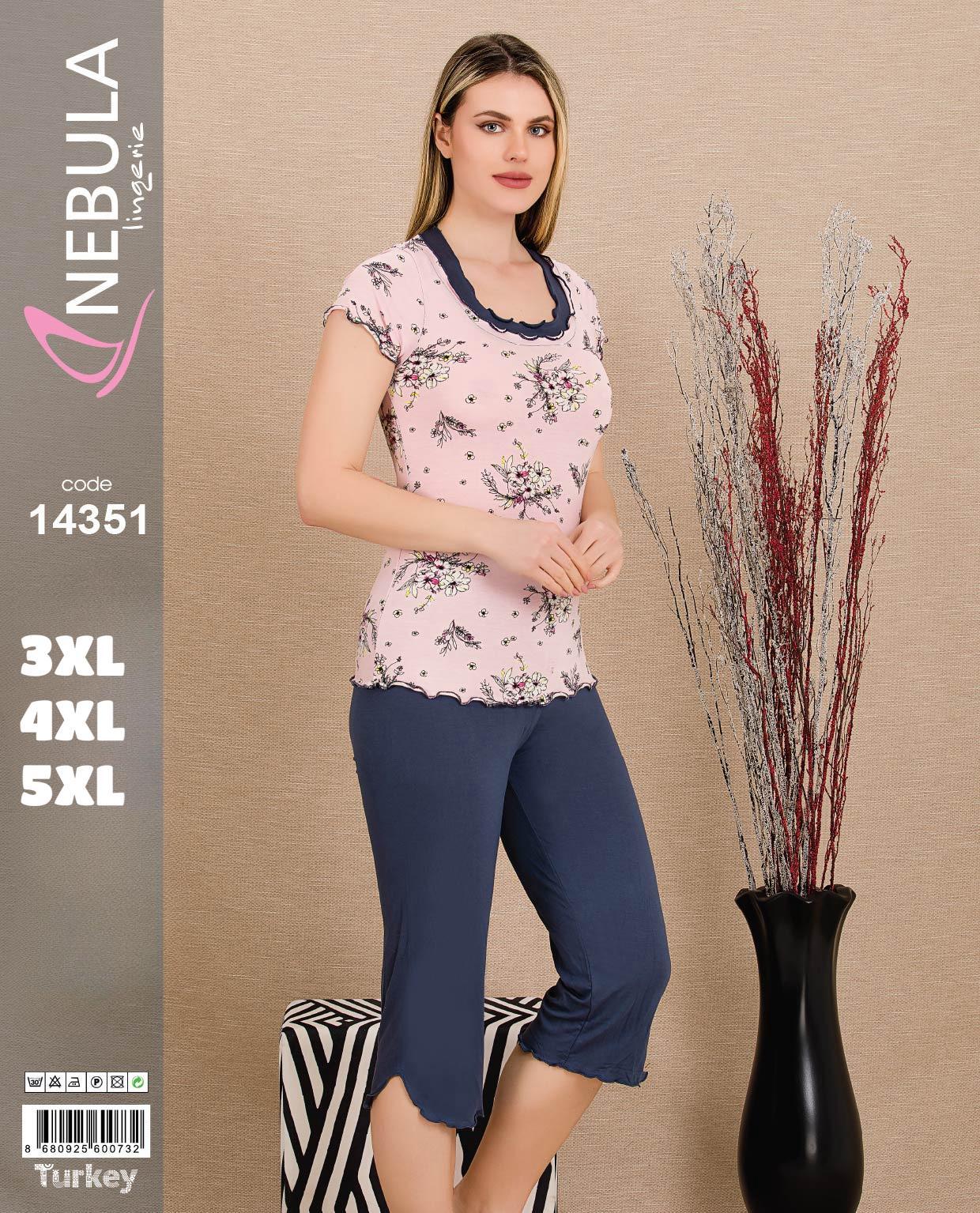 PIŻAMA DAMSKA KRÓTKI REKAW 3/4 SPODNIE WISKOZA 3XL-5XL