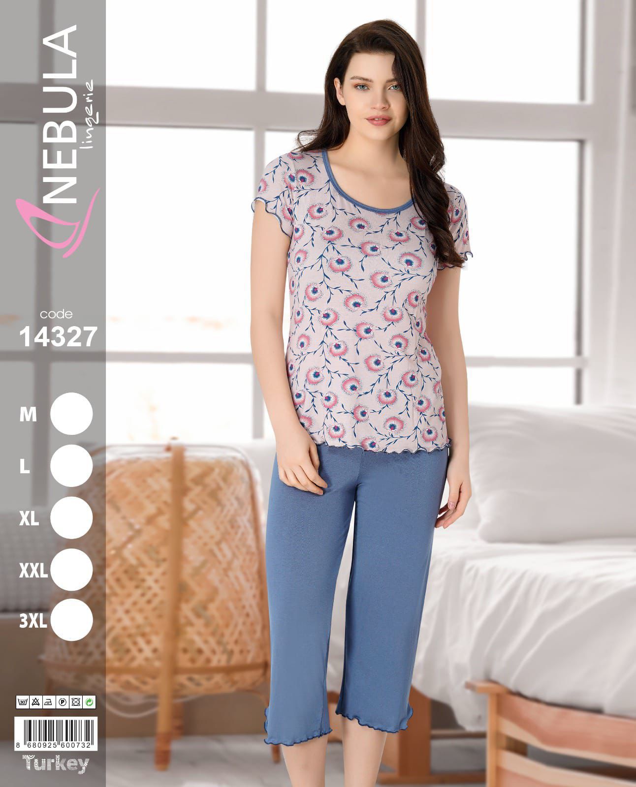 PIŻAMA DAMSKA KRÓTKI REKAW 3/4 SPODNIE WISKOZA M-3XL 14327 to wygodna i stylowa piżama damska, idealna na ciepłe letnie noce. Składa się z koszulki z krótkim rękawem oraz spodni 3/4. Dostępna w rozmiarach od M do 3XL.