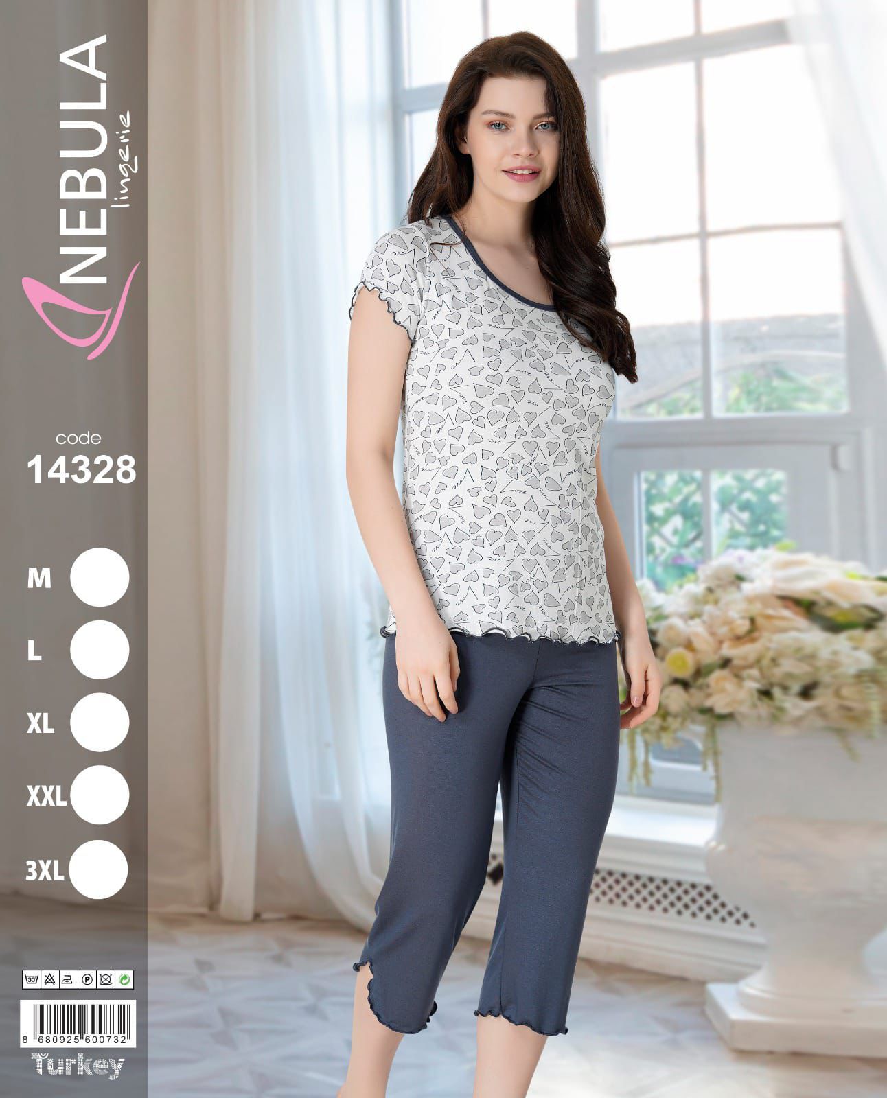 PIŻAMA DAMSKA KRÓTKI REKAW 3/4 SPODNIE WISKOZA M-3XL 14328 to wygodna i stylowa piżama damska, idealna na ciepłe letnie noce. Składa się z koszulki z krótkim rękawem oraz spodni 3/4. Dostępna w rozmiarach od M do 3XL.
