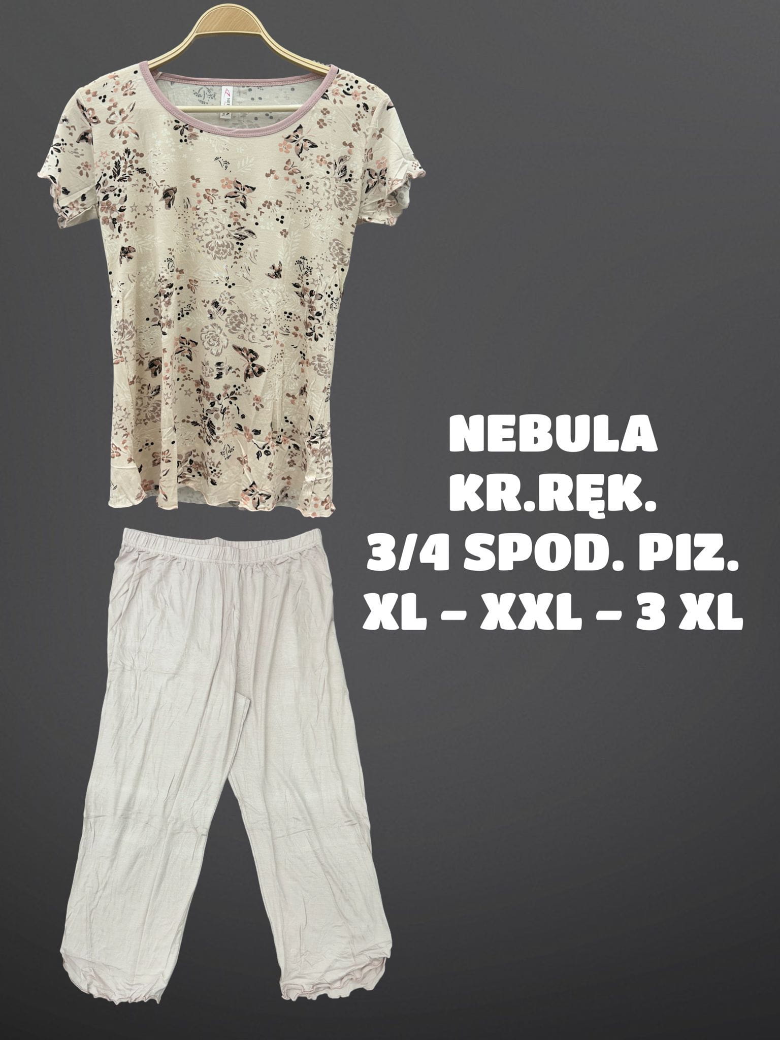 PIŻAMA DAMSKA KRÓTKI RĘKAW 3/4 SPODNIE XL-3XL 14311 jest idealna do sprzedaży hurtowej jako komplet bielizny.