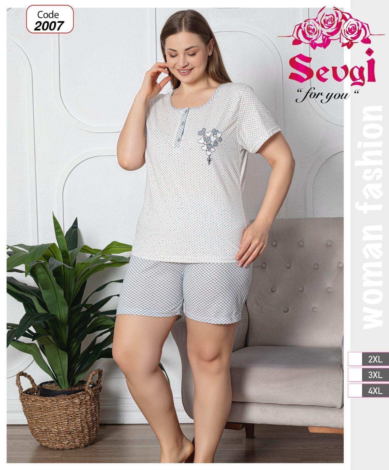 PIŻAMA DAMSKA KRÓTKI RĘKAW Z SZORTAMI BIG SIZE 2XL-4XL 2007
