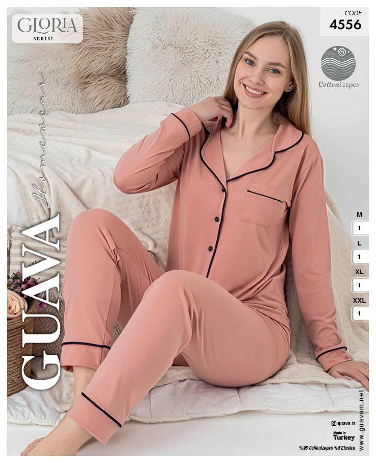 Piżama posiada długi rękaw oraz długie spodnie, które gwarantują optymalną temperaturę ciała przez całą noc. Doskonale dopasowują się do sylwetki, podkreślając jej atuty.