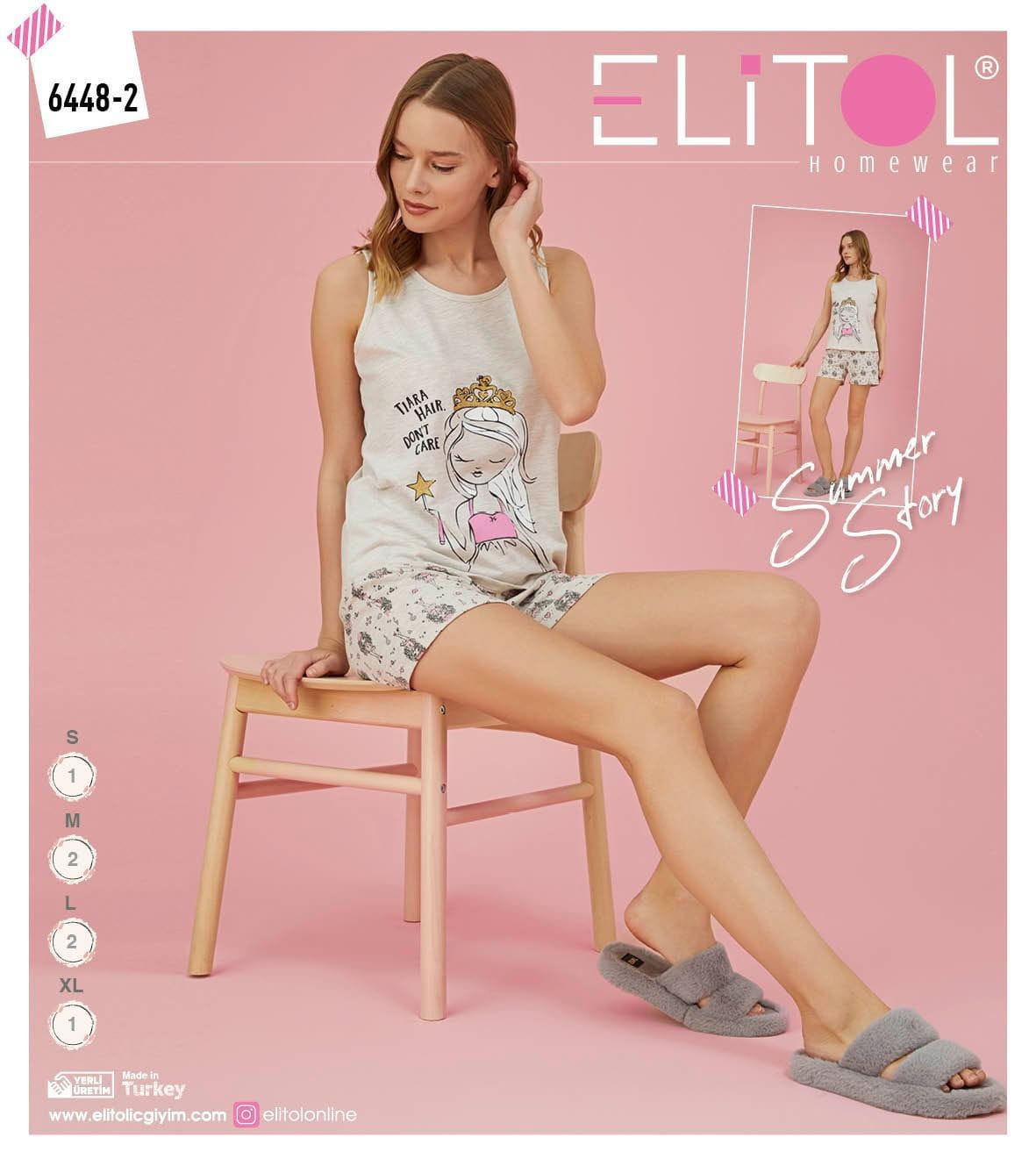 PIŻAMA DAMSKA SZEROKIE RAMIĄCZKA Z SZORTAMI S-XL 6448-2