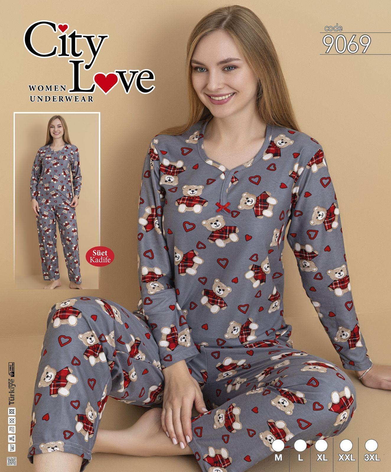 PIŻAMA DAMSKA WELUROWA DŁUGI RĘKAW DŁUGIE SPODNIE