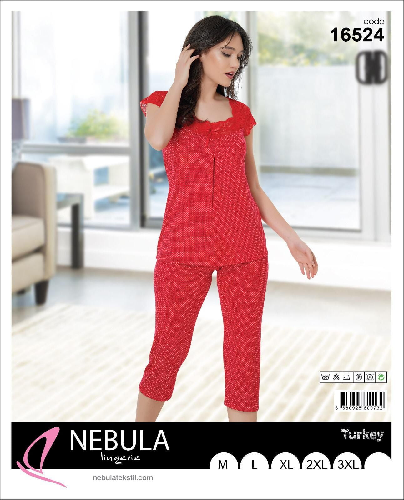 PIŻAMA DAMSKA Z KORONKĄ KRÓTKI REKAW 3/4 SPODNIE M-3XL 16524 16523