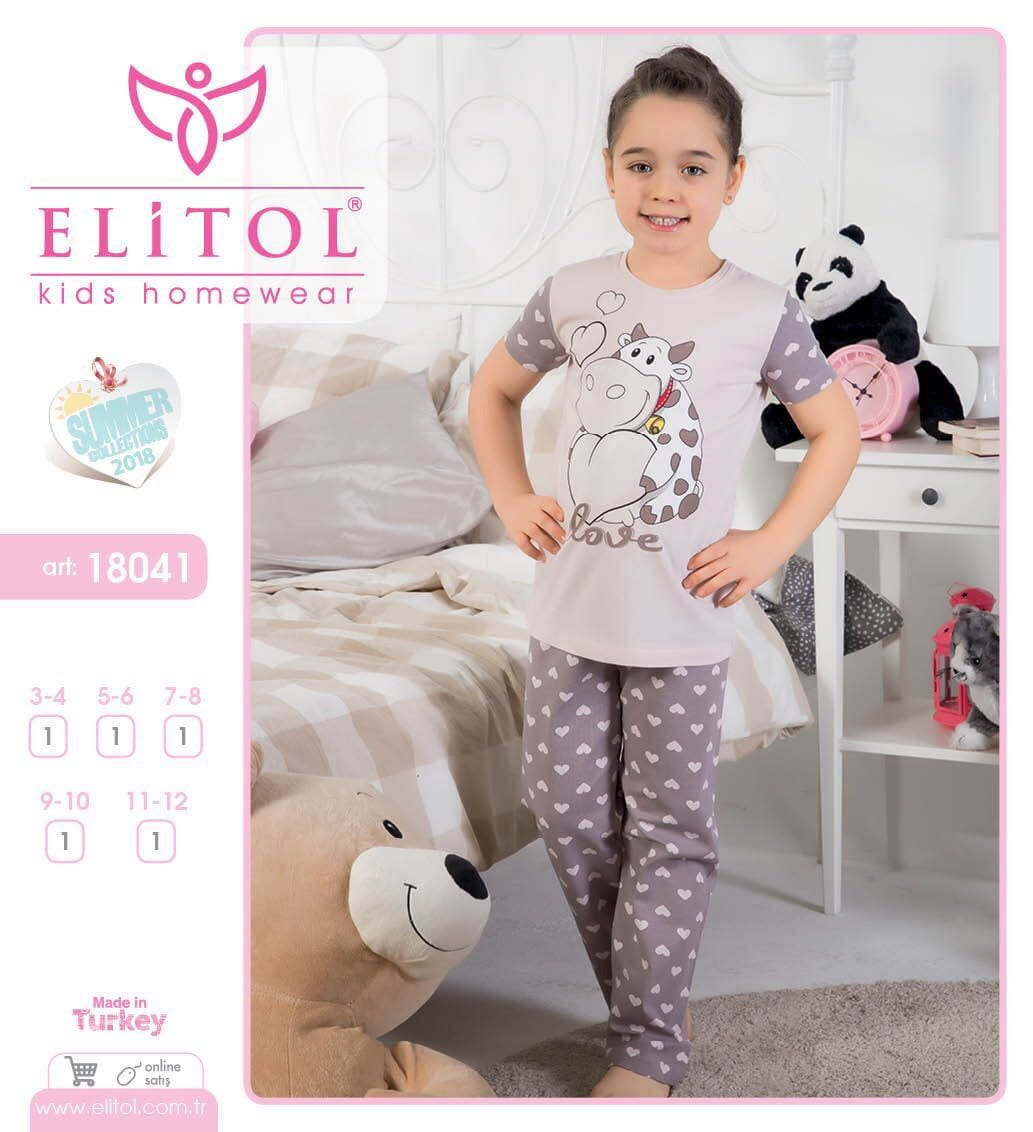 PIŻAMA DZIEWCZĘCA BAWEŁNA KRÓTKI RĘKAW DŁUGIE SPODNIE 18041