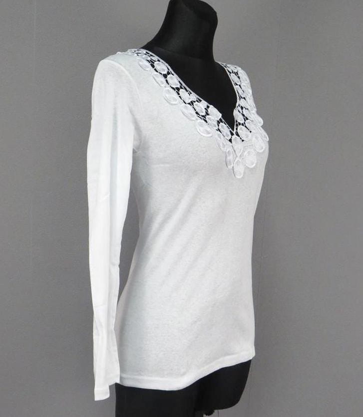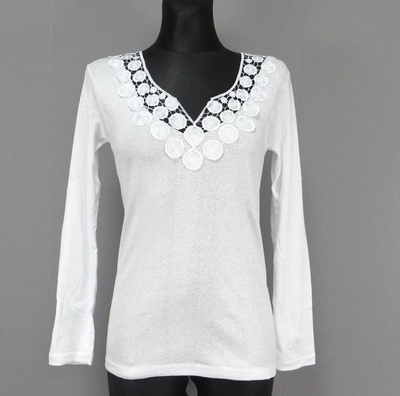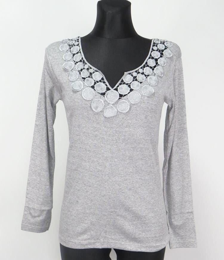 PODKOSZULKA DAMSKA NA DŁUGI RĘKAW Z KORONKĄ 432 dostępna jest w rozmiarach L, XL, 2XL, 3XL. Możesz wybrać spośród trzech klasycznych kolorów: białego, czarnego i szarego.