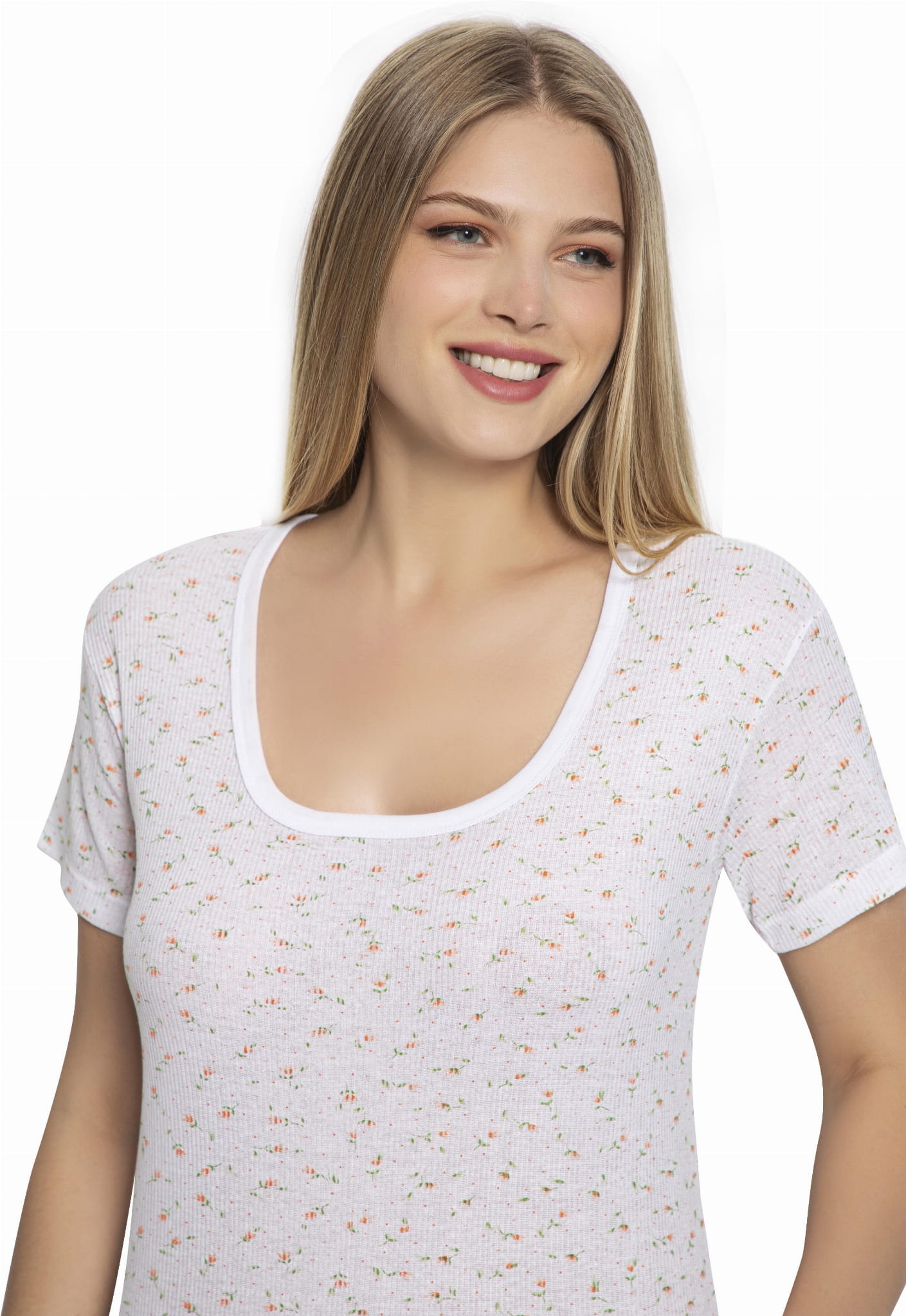 PODKOSZULKA DAMSKA NA KRÓTKI RĘKAW KWIATKI 722