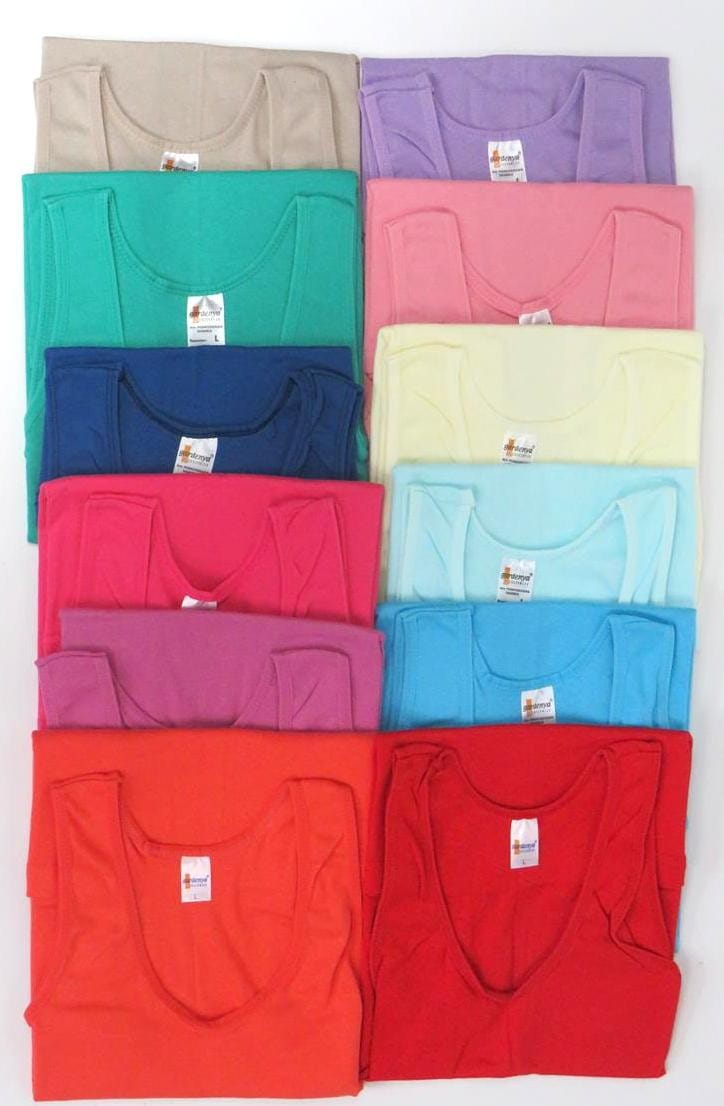 Podkoszulka damska na ramiączkach w mixie kolorów to idealna propozycja dla każdej kobiety, która szuka wygodnej i stylowej bielizny. Paczka zawiera 12 sztuk podkoszulek w rozmiarach L-3XL. Dostępne kolory to biały, czarny, szary oraz mix zielonego, bordowego i różowego.