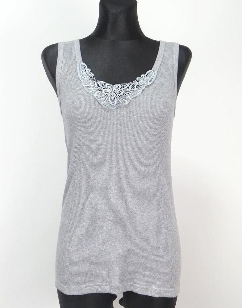Podkoszulka na ramiączkach z koronką 461 szara