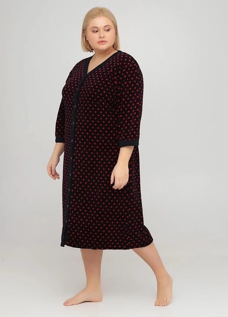 Ta elegancka podomka damska wykonana z wysokiej jakości weluru to idealna propozycja dla kobiet ceniących wygodę i styl. Podomka posiada wygodne zapięcie na guziki, które umożliwia swobodne zakładanie i zdejmowanie. Dostępna w rozmiarach od XL do 5XL, zapewnia doskonałe dopasowanie do różnych sylwetek.