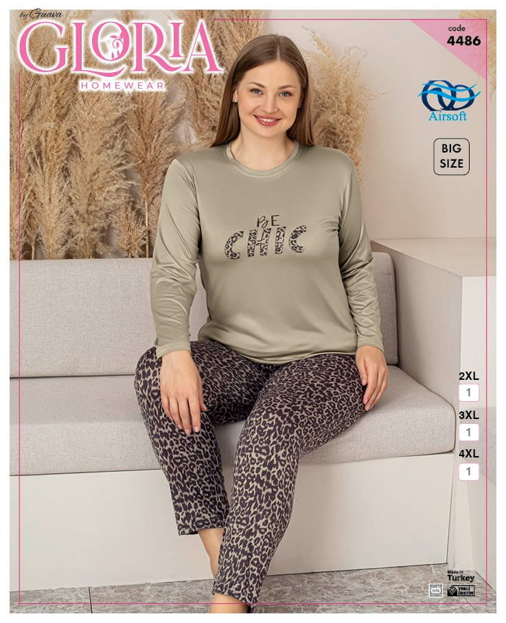 Piżama jest dostępna w rozmiarach  2XL,3xl,4xl dzięki czemu każda kobieta będzie mogła znaleźć odpowiednią dla siebie. Wykonana jest z wysokiej jakości materiału, składającego się z 95% poliester i 5% elastanu. Dzięki temu jest niezwykle miękka, wygodna i elastyczna, co zapewnia doskonałe dopasowanie i komfort noszenia.