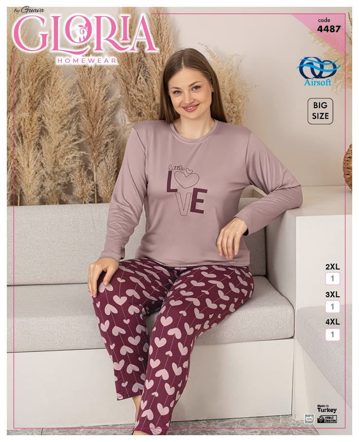 Piżama jest dostępna w rozmiarach  2XL,3xl,4xl dzięki czemu każda kobieta będzie mogła znaleźć odpowiednią dla siebie. Wykonana jest z wysokiej jakości materiału, składającego się z 95% poliester i 5% elastanu. Dzięki temu jest niezwykle miękka, wygodna i elastyczna, co zapewnia doskonałe dopasowanie i komfort noszenia.