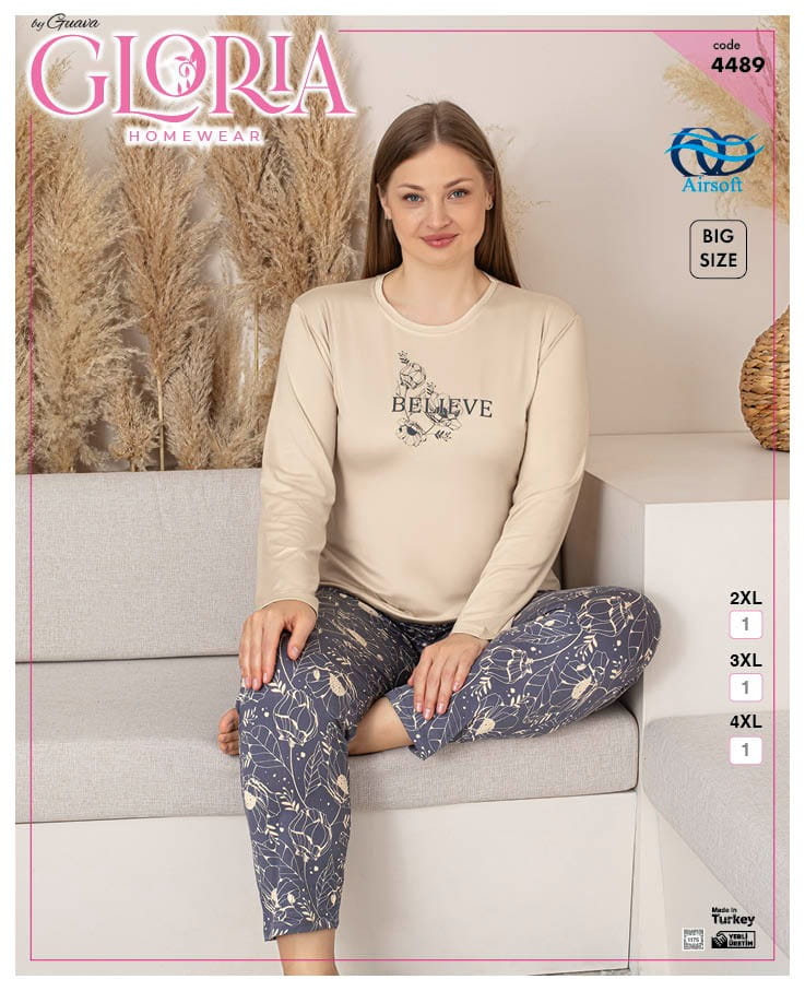 Piżama jest dostępna w rozmiarach 2XL,3xl,4xl dzięki czemu każda kobieta będzie mogła znaleźć odpowiednią dla siebie. Wykonana jest z wysokiej jakości materiału, składającego się z 95% poliester i 5% elastanu. Dzięki temu jest niezwykle miękka, wygodna i elastyczna, co zapewnia doskonałe dopasowanie i komfort noszenia.