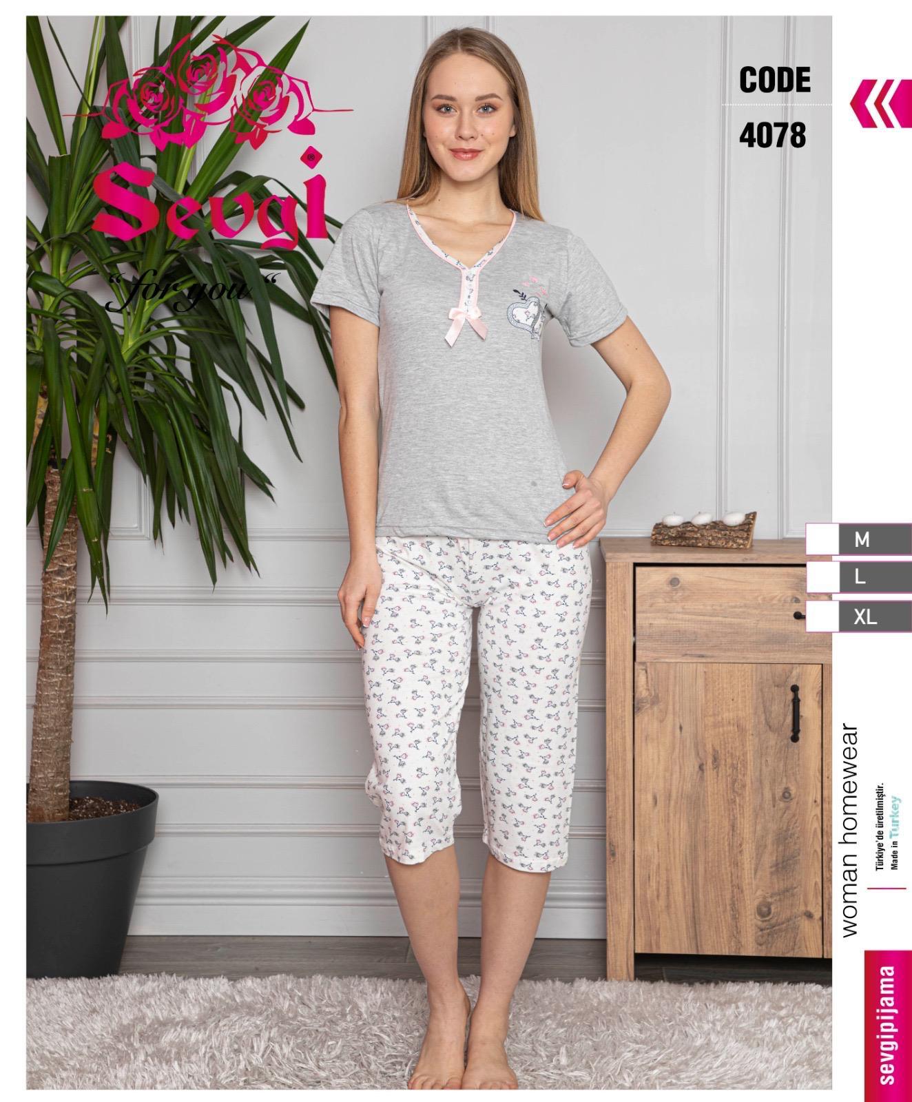 PIŻAMA DAMSKA KRÓTKI RĘKAW 3/4 SPODNIE BAWEŁNA M-XL 4078