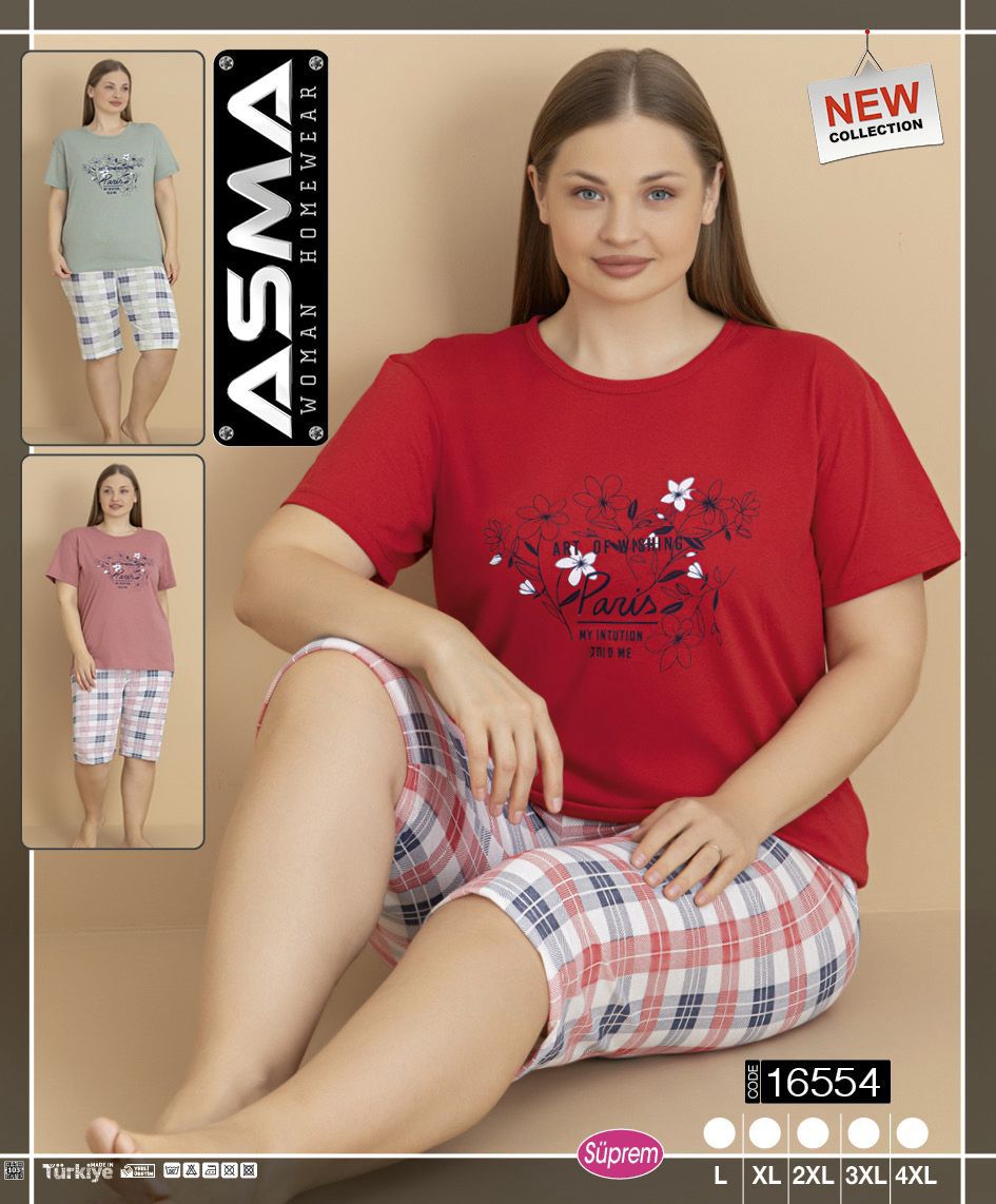 Piżama damska krótki rękaw + spodnie 3/4 ASMA BIG SIZE