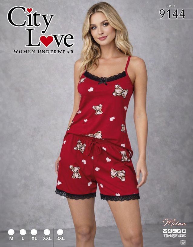 Piżama damska na ramiączka + szorty CITY LOVE M-3XL