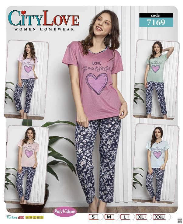 PIŻAMA DAMSKA DŁUGIE SPODNIE KRÓTKI RĘKAW S-XXL 7167