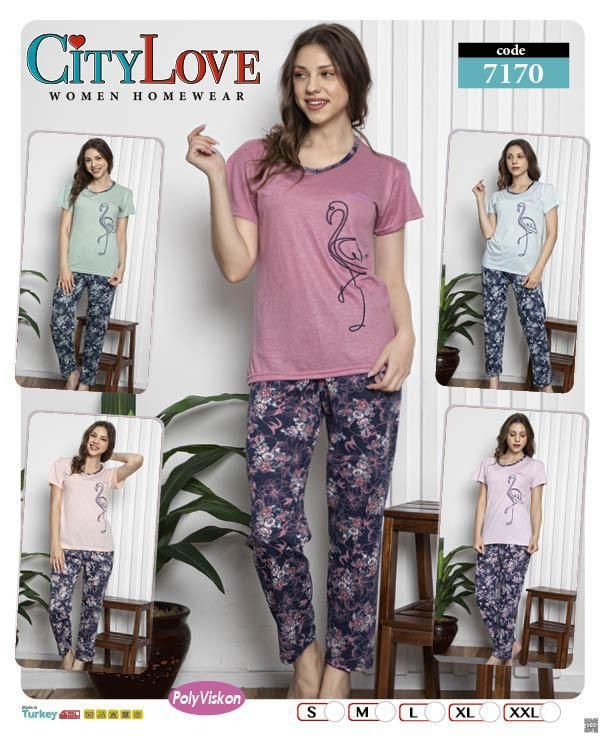 PIŻAMA DAMSKA DŁUGIE SPODNIE KRÓTKI RĘKAW S-XXL 7167