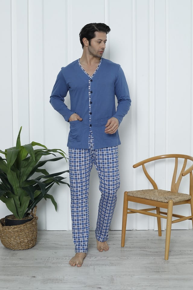 Piżama męska M-XXL ma klasyczny, uniwersalny design, który zadowoli każdego klienta. Może być idealnym rozwiązaniem dla mężczyzn, którzy cenią sobie zarówno wygodę, jak i elegancję. Rozpinane zapięcie na przodzie umożliwia łatwe zakładanie i zdejmowanie piżamy.