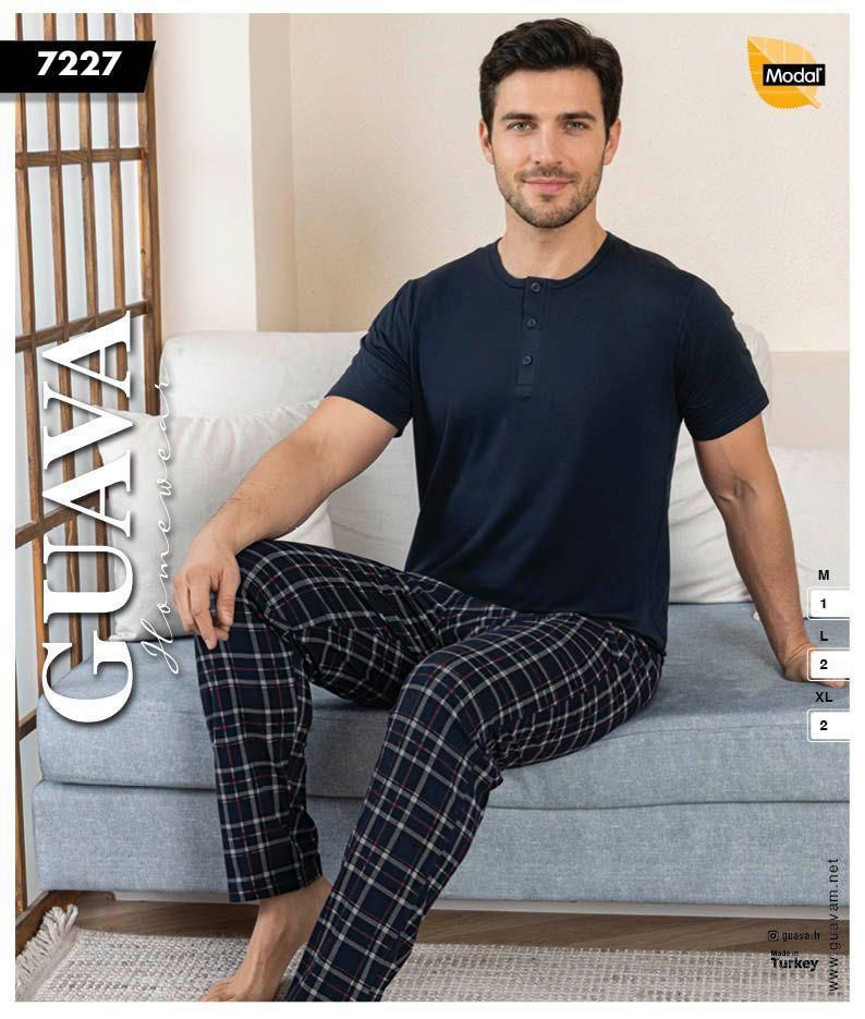 Piżama męska krótki rękaw + długie spodnie kratka GUAVA