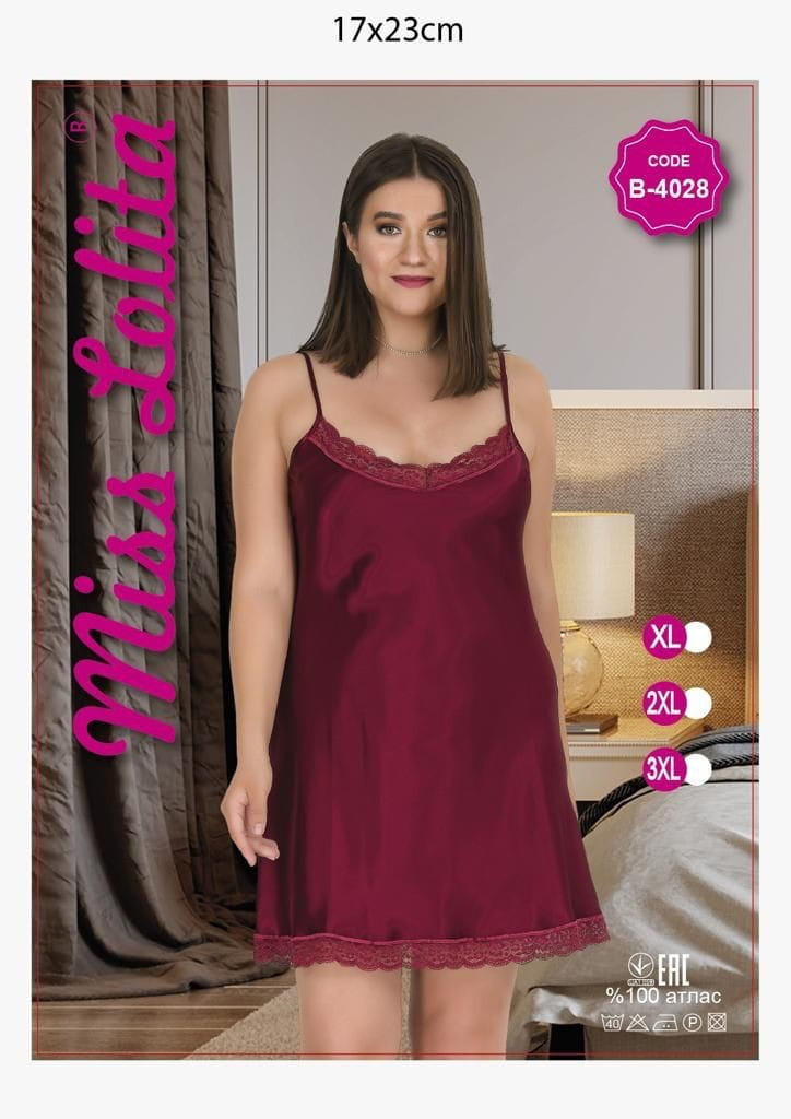 Ta satynowa koszula nocna na ramiączka to idealny wybór dla kobiet o większych rozmiarach. Dostępna w rozmiarach XL-3XL, zapewnia wygodę i swobodę ruchów. Model B-4028 jest pakowany w zestawie 3 sztuk.