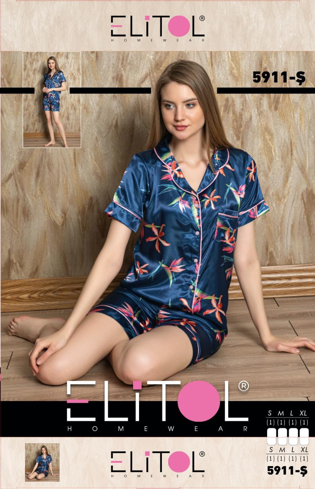 SATYNOWA PIŻAMA DAMSKA ROZPINANA KRÓTKI RĘKAW Z SZORTAMI S-XL 5911-S