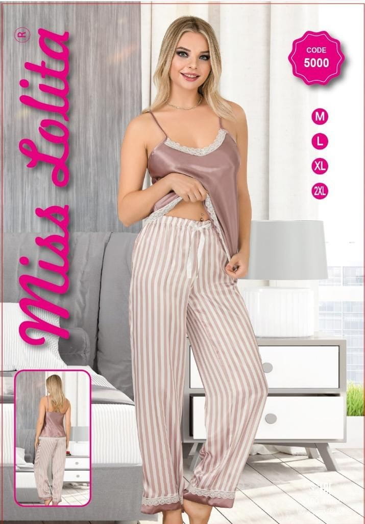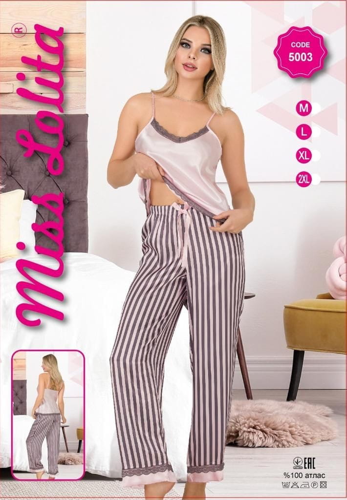 SATYNOWA PIŻAMA DAMSKA WĄSKIE RAMIĄCZKA DŁUGIE SPODNIE M-XXL 5000 5003
