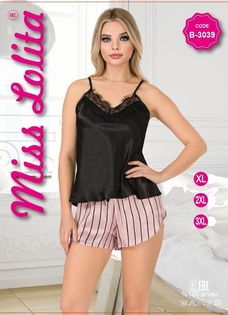 SATYNOWA PIŻAMA DAMSKA WĄSKIE RAMIĄCZKA Z SZORTAMI XL-3XL B-3038 B-3039