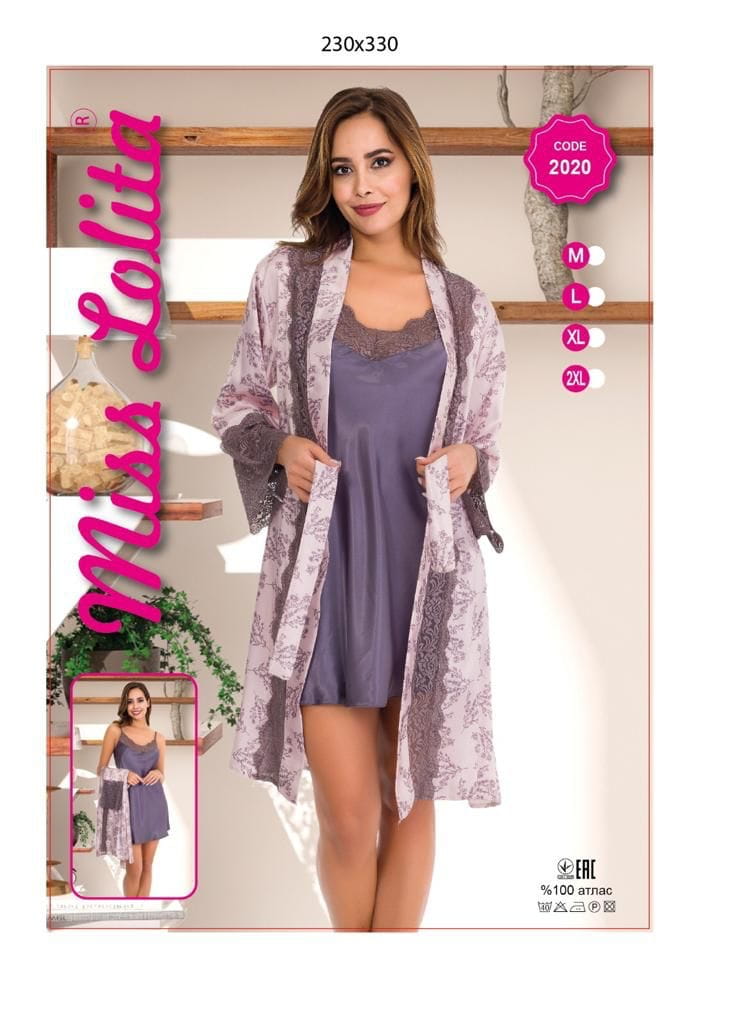 SATYNOWY KOMPLET KOSZULA ZE SZLAFROKIEM M-XXL 2020